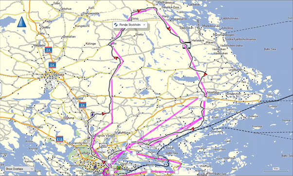 Van deze route heb ik schijnbaar geen tracks meer (of nog niet kunnen vinden), maar van een andere dagtocht vanuit Stockholm heb ik nog wel een track, en deze is erg goed zichtbaar en redelijk gedetailleerd.
