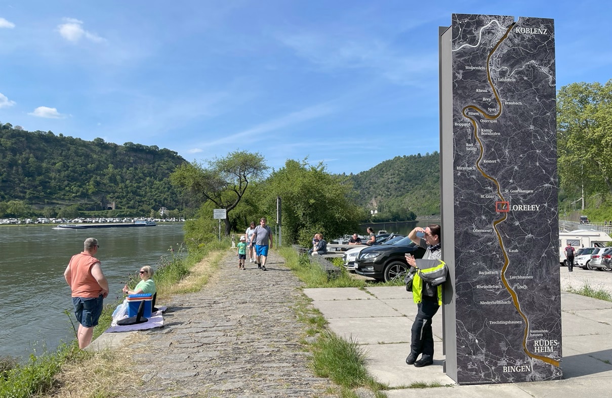 Na het nodige stuurwerk komen we ook nog een stukje langs de Rijn en stoppen we even bij de Loreley. De Loreley is een 132 meter hoge rots waar de Rijn met een haakse bocht doorheen stroomt. Hierdoor heb je serieuze stroomversnellingen en door de jaren zijn er vele schepen ten onder gegaan.